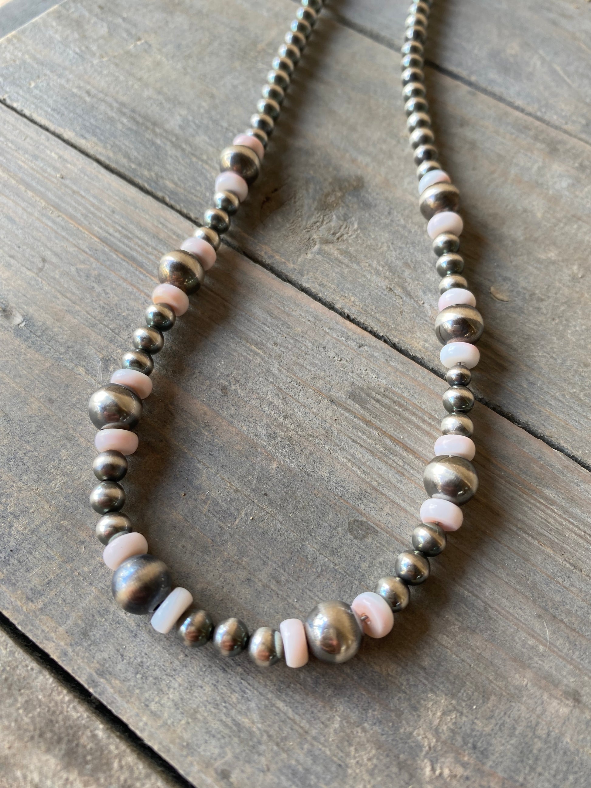 16-18” 5 & 8mm Original Navajo pearl with 6mm Pink Conch.